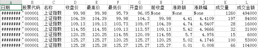 Static/000001.csv——上证指数历史数据