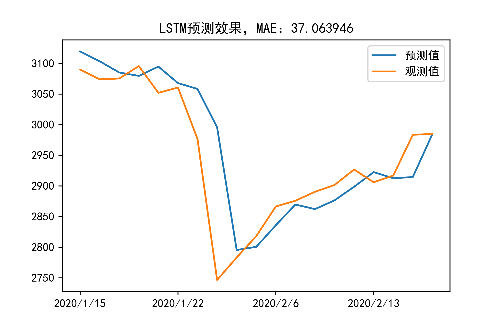 2024年2月19日 11:12程序调用tensorflow.keras搭建了一个简单长短记忆型网络(LSTM),以上证指数为例,对数据进行标准化处理,输入5天的'收盘价', '最高价', '最低价','开盘价',输出1天的'收盘价',利用训练集训练网络后,输出测试集的MAE
